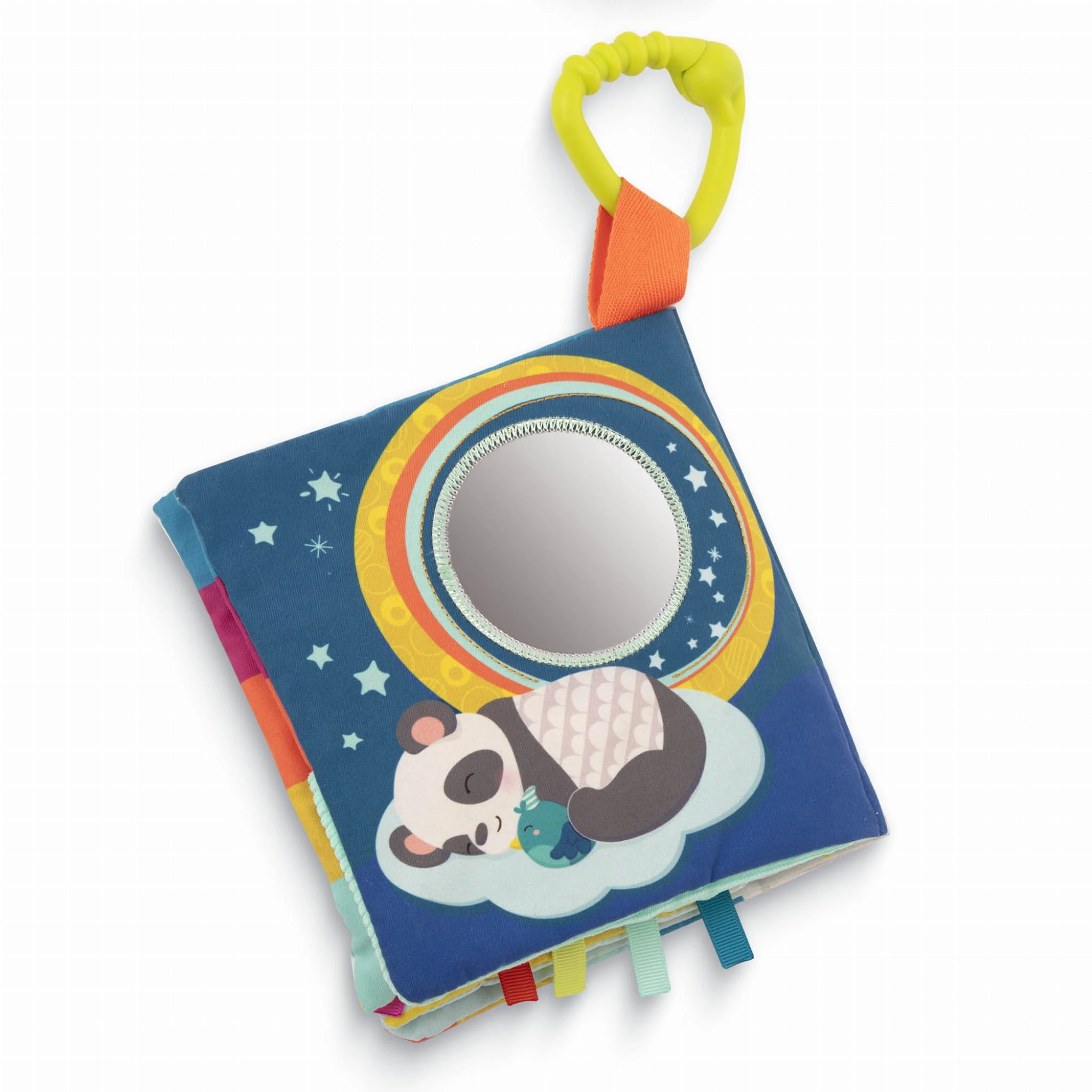 - Rozwój motoryki: Różnorodne tekstury do głaskania, szeleszczące elementy do naciskania oraz pierścień do chwytania wspierają rozwój małej motoryki i koordynacji ręka-oko.